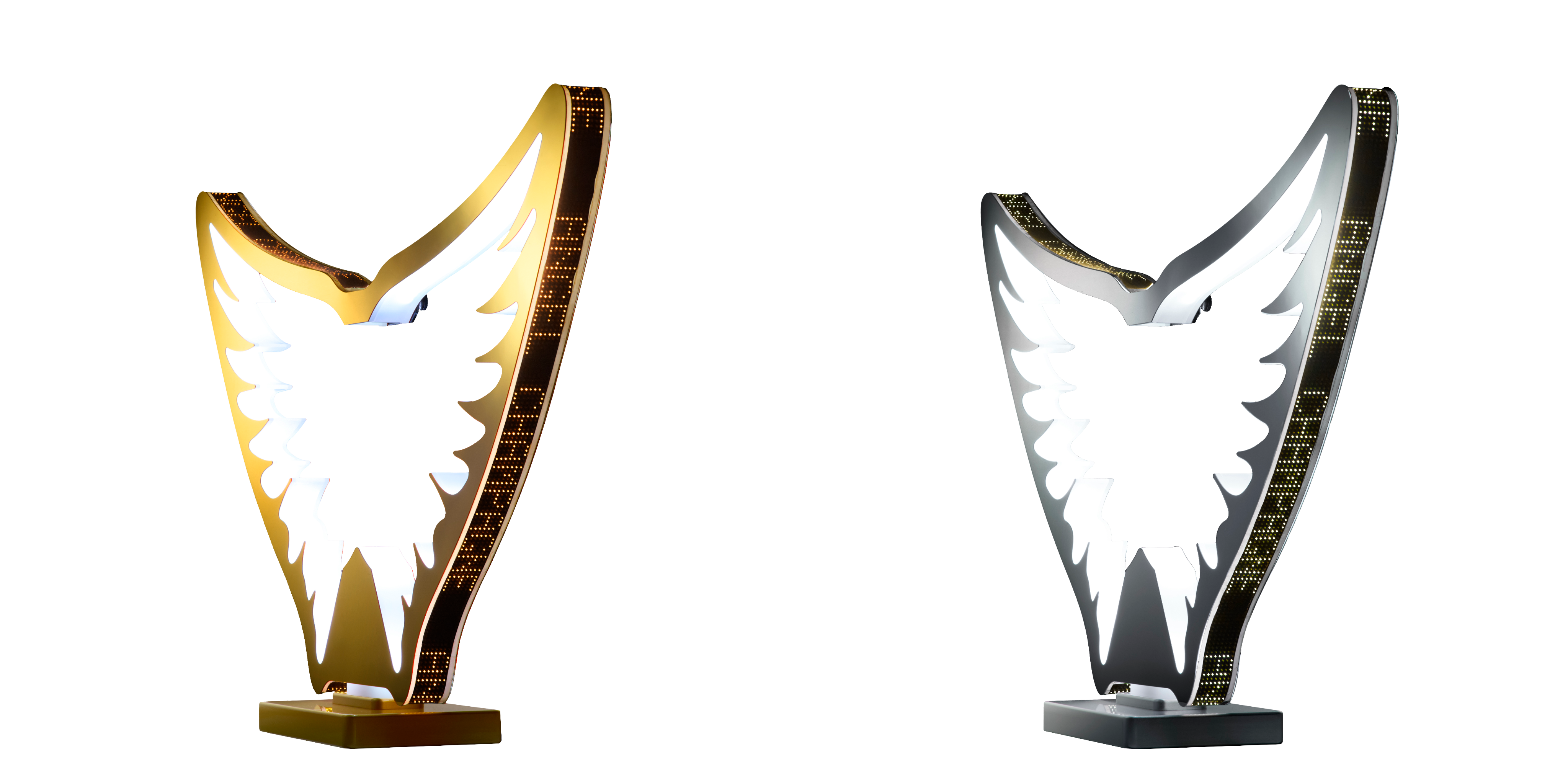 ボトルを美しく際立たせるようデザインされたこのモニュメントは、ANGEL CHAMPAGNEの象徴でもある「羽」をモチーフに、洗練された造形美で仕上げられています。